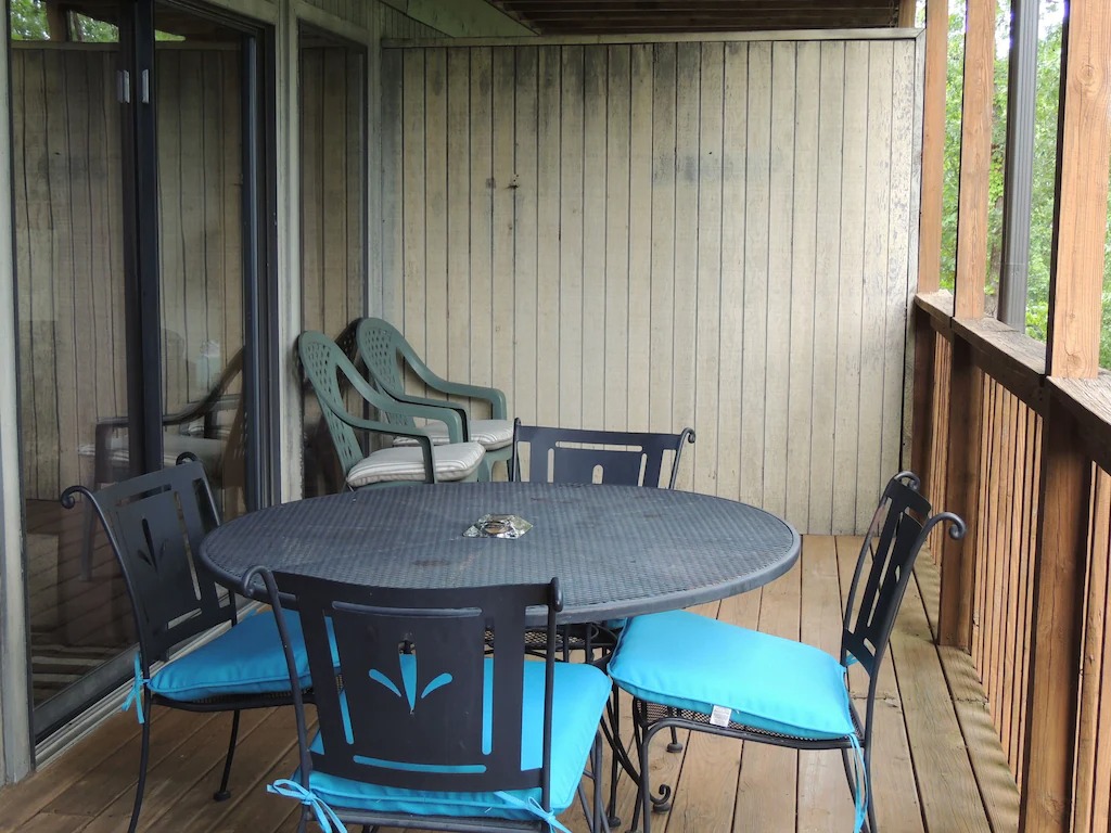 This truly has a comfortable cabin feel with 2 bedrooms, a queen master with tub/shower combo, a queen guest room with an additional queen sofa sleeper in the living room, and a semi-private bathroom and walk-in shower. All linens and towels provided. This condo will accommodate 6 comfortably. Cooking is easy with a fully equipped kitchen with coffee provided. You will be able to enjoy coffee on the private deck which faces a wooded area. You might even catch a glimpse of deer, fox or many other animals that live in the area. Listen at night for owls, whippoorwills or the many singing tree frogs that inhabit the woods. With so many attractions and activities in the area, Cozy Cabin is the perfect getaway for any season.